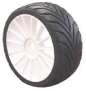 Profilo di tipo ribassato che garantisce la massima trazione su tutti i tipi di automodello, ed in ogni condizione di gara. Disegno di tipo asimmetrico con spaziatura variabile tra interno ed esterno, che garantisce un rapido e regolare riscaldamento della mescola ed un consumo limitato del battistrada. Struttura con telatura integrale realizzata con tessuto speciale in kevlar che garantisce la massima stabilità anche alle alte temperature ed in ogni condizione di utilizzo. Riempimento realizzato con mousse speciale resistente alle alte temperature che garantisce regolarità di tenuta. Cerchio con struttura modificata a flessione specifica per garantire il massimo grip in ogni condizione di gara.