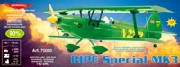 Libera riduzione di un biplano Americano chiamato Eaa-Acro-Sport. Di grande effetto estetico e con ottime doti di volo, il Bipe Special si presta per l’esecuzione di tutto il programma acrobatico FAl. Grazie ad un carico alare contenuto, il modello è di facile controllo nella fase d’atterraggio. Scatola di montaggio con ali in espanso rivestite in balsa e resina; 4 alettoni con movimento “torque tube”. Fusoliera in Duraflex pronta all’uso. Deriva e stabilizzatore in balsa. Carrello in nylon e fibra di vetro, carenature ruote in Duraflex, accessori vari, ruote ø 70 mm e serbatoio c.c. 450, decals, ecc. Piani e istruzioni per il montaggio. <<2-correlati>>