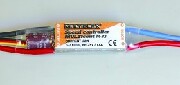 Nuovo regolatore MPX per motori Brushless# Fino a 27A con raffreddamento normale, per un breve periodo max. 35 A.# Freno dinamico per eliche ripiegabili# BEC (1,5A) per ricevente e servi# Cut-off automatico per Lipo, NiCd e NiMH# Protezione avviamento accidentale, per evitare la partenza del motore collegando il pacco batteria# Freno programmabile: forte, soft e disattivato caratteristicheN.ro celle con BEC 5 - 10 NiMH/Cd ; 2-3 LipoN.ro celle senza BEC 6 - 16 NiMH/Cd ; 2-4 LipoCorrente continua 27ACorrente massima 35 ATensione BEC 5 VCorrente Bec Max 1.5AFreno ProgrammabileDimensioni mm. 35x25x8Peso gr. 17 <<2-correlati>>